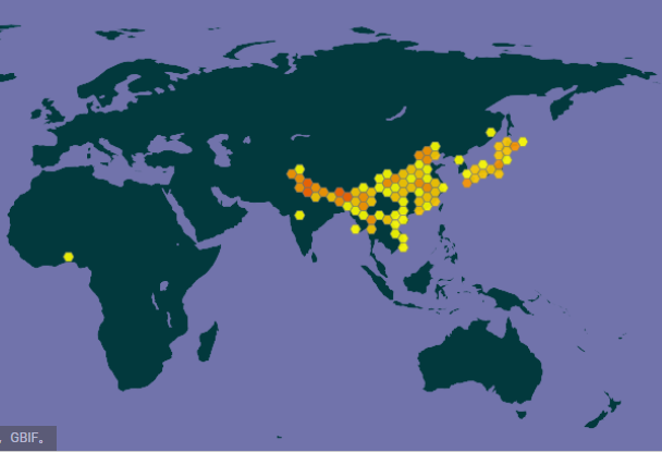 冠鱼狗在世界的分布/图源@GBIF